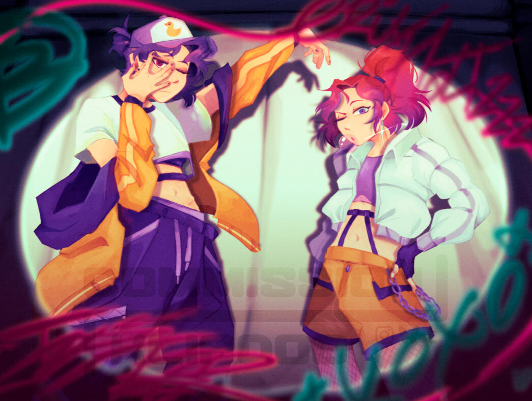 A fully rendered body, typically for character reference and design. They come with a solid color background. An additional character and unique props/weapons will cost extra.