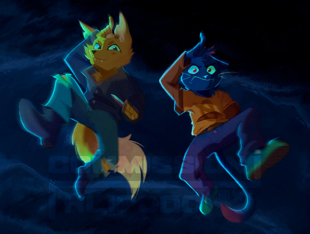 A rendered environment with character(s), typically for storytelling and setting references. An additional character and unique props/weapons will cost extra.